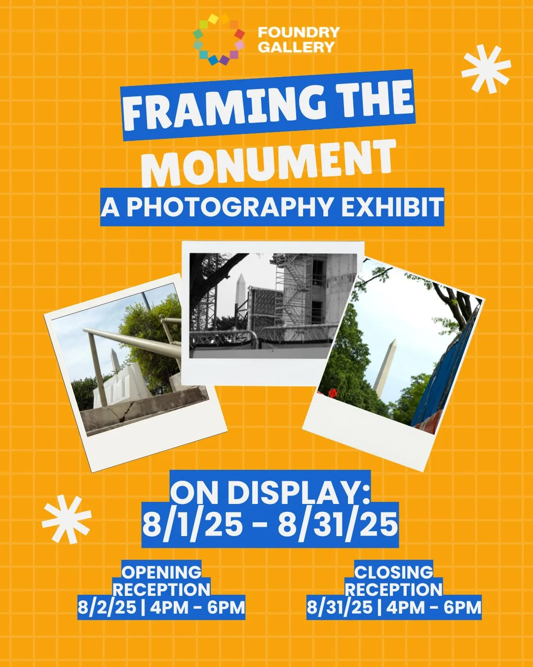 An exploration of perspective, place, and the art of seeing. This photography exhibition brings together a diverse group of regional artists, tasked with capturing the Washington Monument landmark through the classic compositional technique of framing within a frame. The exhibition celebrates the ingenuity and technical mastery of the DMV’s photography community while offering viewers a renewed relationship with the region’s most iconic landmark. Serving as a reminder that even the most familiar spaces hold untapped stories—if only we choose to look a little closer.